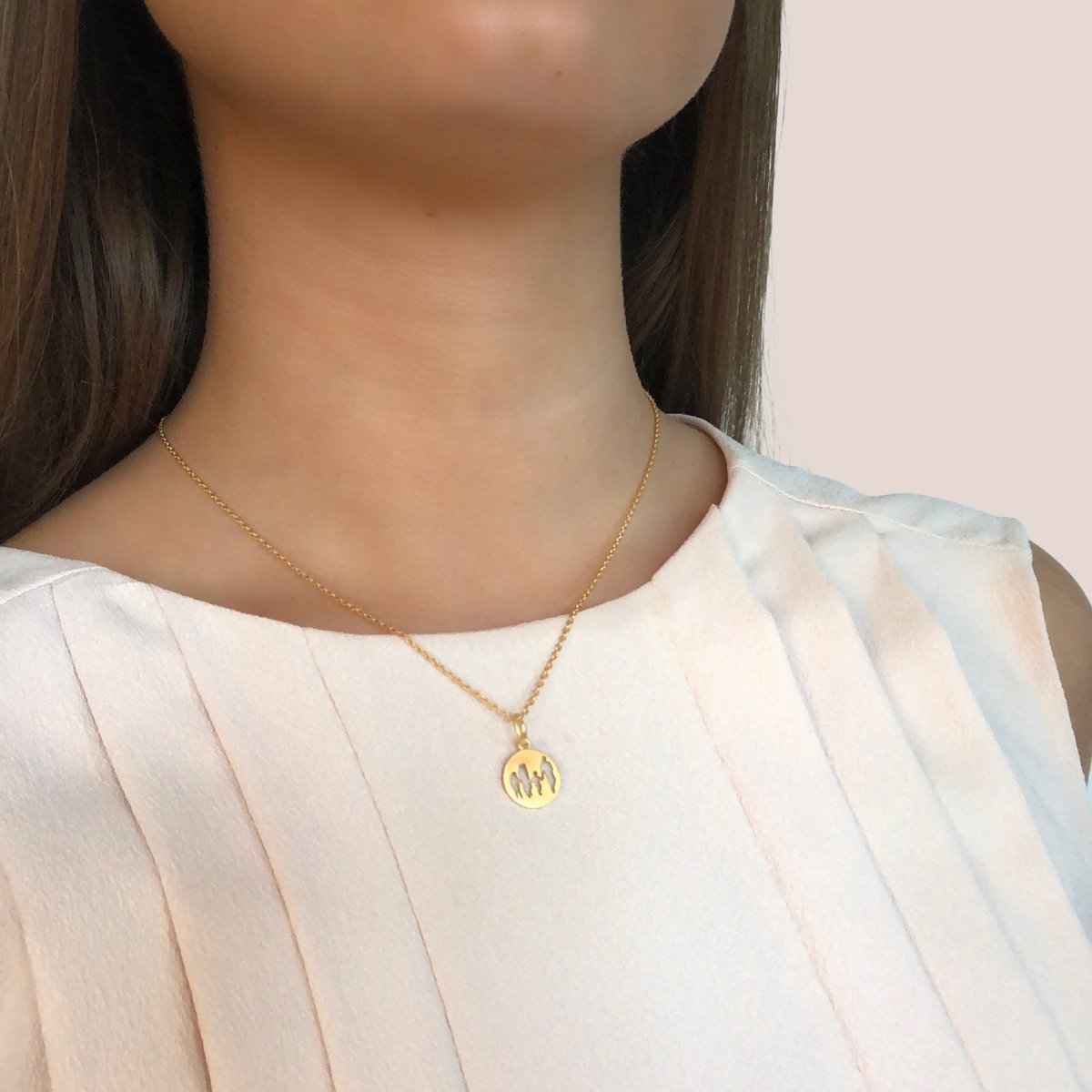 Ein ganz besonderes Schmuckstück mit der Silhouette von zwei Erwachsenen und zwei Kindern.