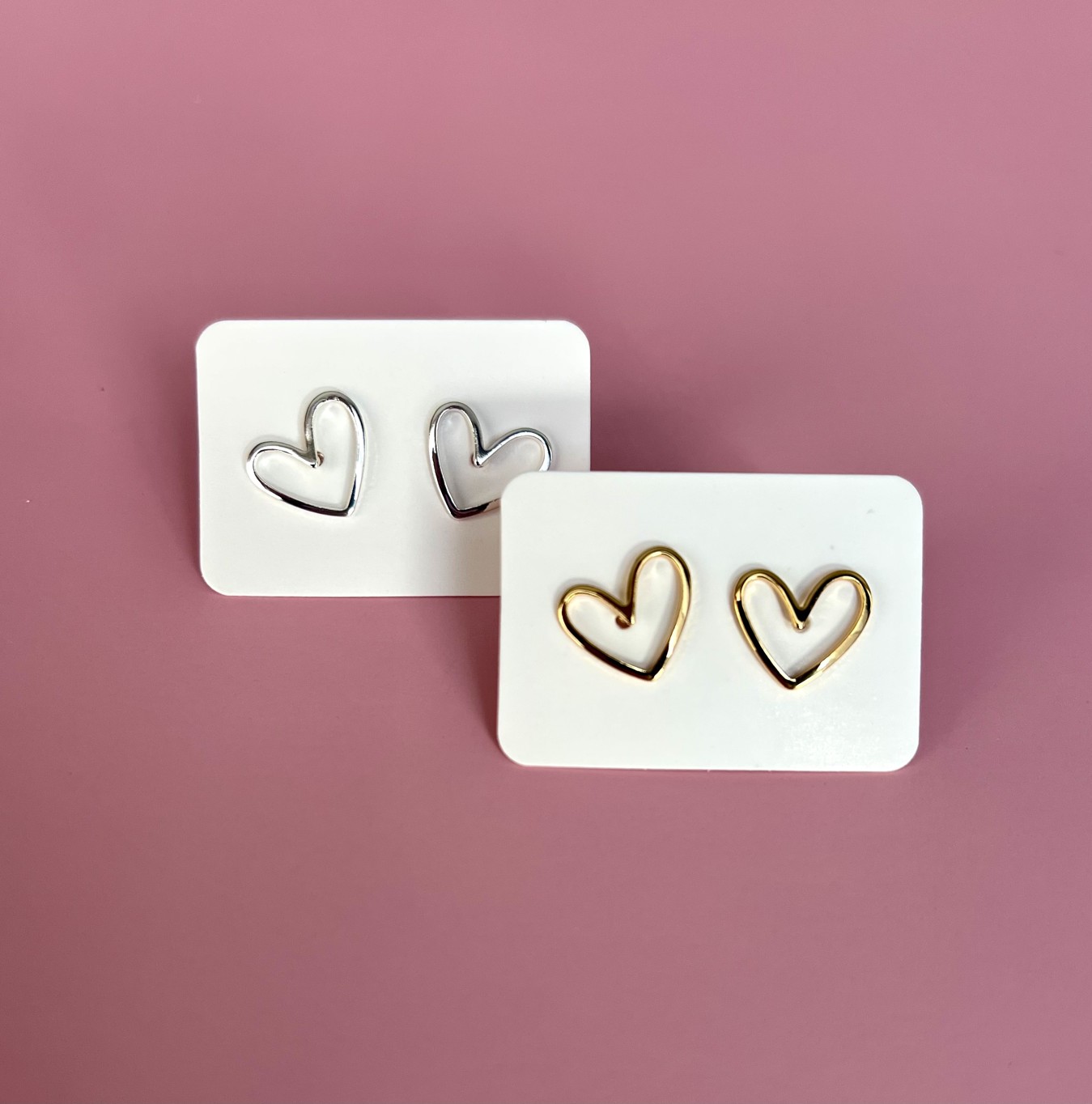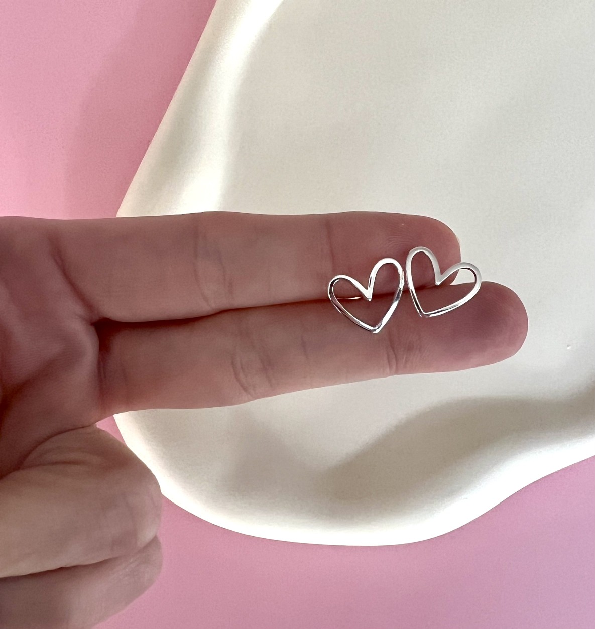 Sehr leichte und filligrane Herz Ohrstecker in Silber und Gold. Das Material ist eher weich, was es so angenehm zu tragen macht, jedoch nicht leicht zu zerbrechen, ideal auch für empfindliche Ohren.