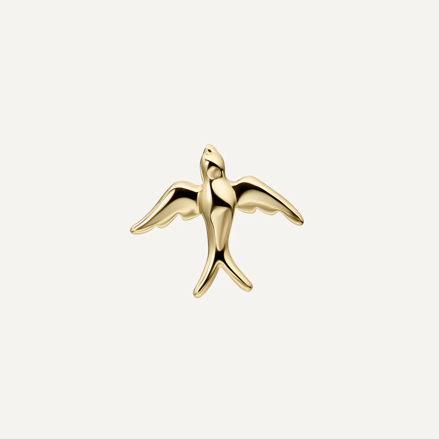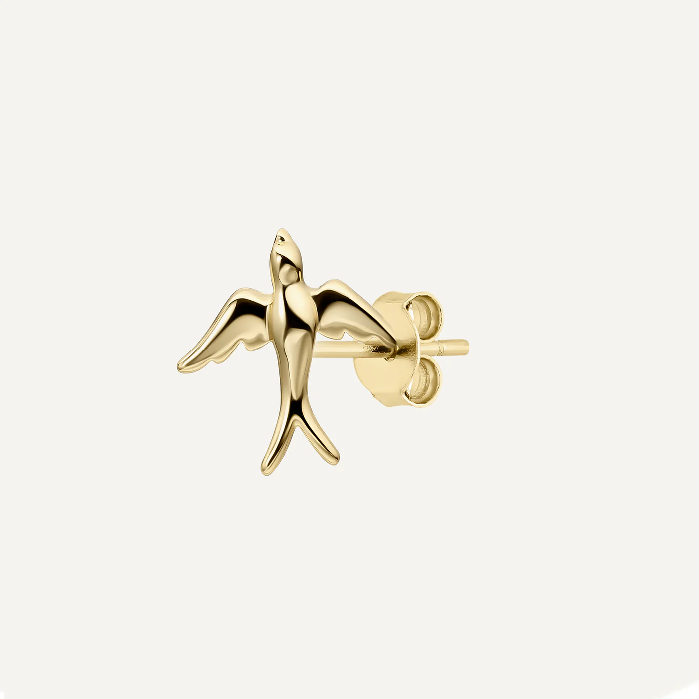 Ohrstecker in Form einer Schwalbe, aus 925er Sterlingsilber mit 18-Karat-Gelbgoldbeschichtung.