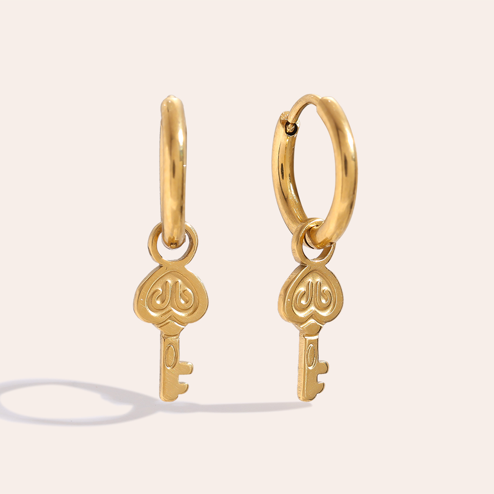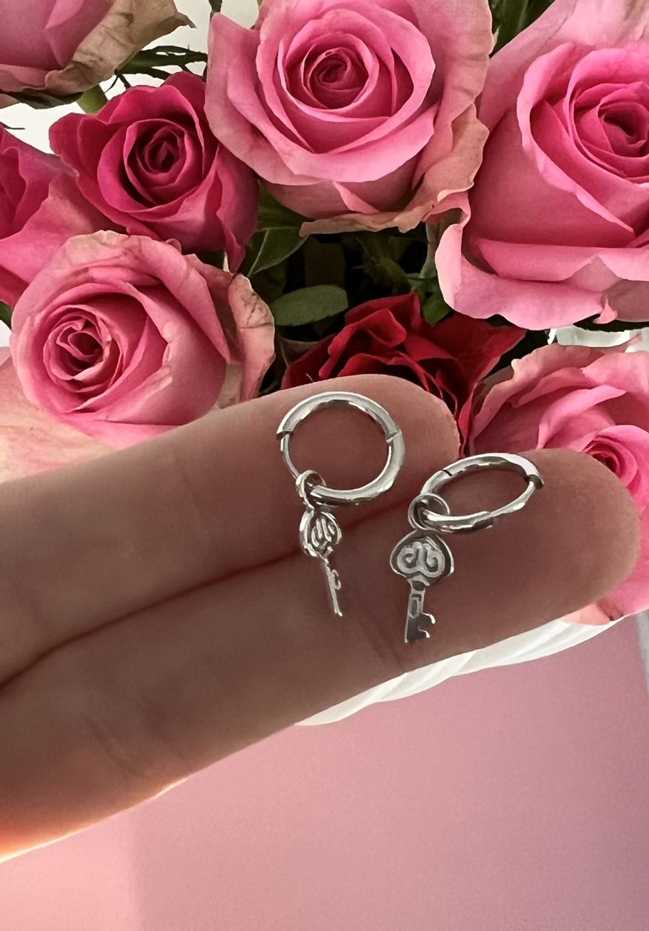 Filigrane und sehr kleine Schlüssel Ohrringe – dezent, aber voller Bedeutung. Der Schlüssel steht für Freiheit, Neuanfang oder vielleicht ist es der Schlüssel zu einem Herzen?