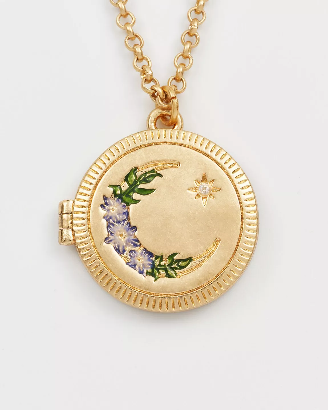 Diese Nachtschattenmond-Medaillon-Halskette flüstert von mondhellen Momenten und verborgenen Andenken und ist ein zartes Stück, das dazu dient, wertvolle Erinnerungen festzuhalten.