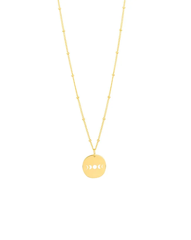 Die zarte Kugelkette mit Mondphasen Anhänger ist in zwei Farben erhältlich.