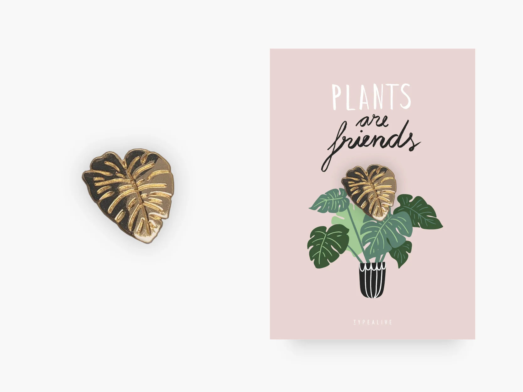 Nicht jeder versteht es, aber wir wissen es: Pflanzen sind Freunde. Manchmal sogar die besten. Dieser schöne Pin ist also bestens geeignet für alle Pflanzenliebhaber und macht sich außerdem hervorragend als Geschenk. Statt Blumen zum Beispiel. Pins von typealive sind aus Messing, geprägt, gold plattiert und werden durch einen Schmetterlingsverschluss mit Schutzkappe fixiert. WOW! Die Schutzkappe verhindert, dass Du Dich pikst. Die Manufakturproduktion macht jeden Pin zu einem einzigartigen Einzelstück. Klingt schon ganz gut? Es wird noch besser. Die Pins kommen mit einer passenden Karte. Die Karte ist gelocht und hält die Pins in Position. Damit fliegen Dir die Herzen nur so zu. Versprochen!