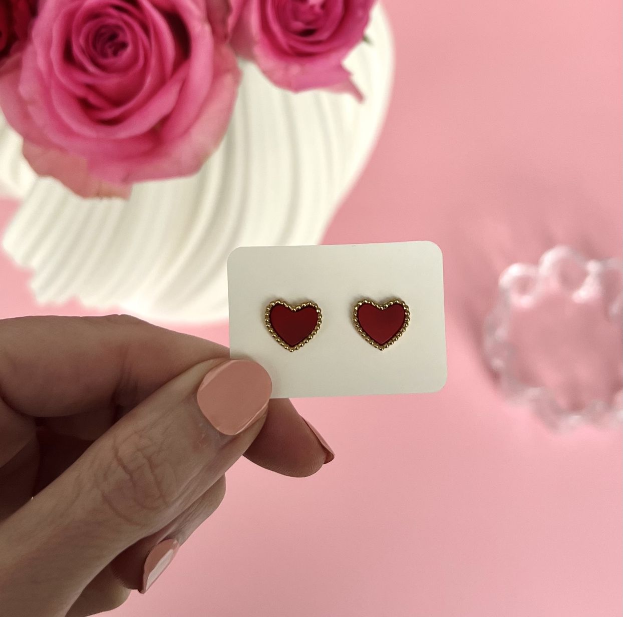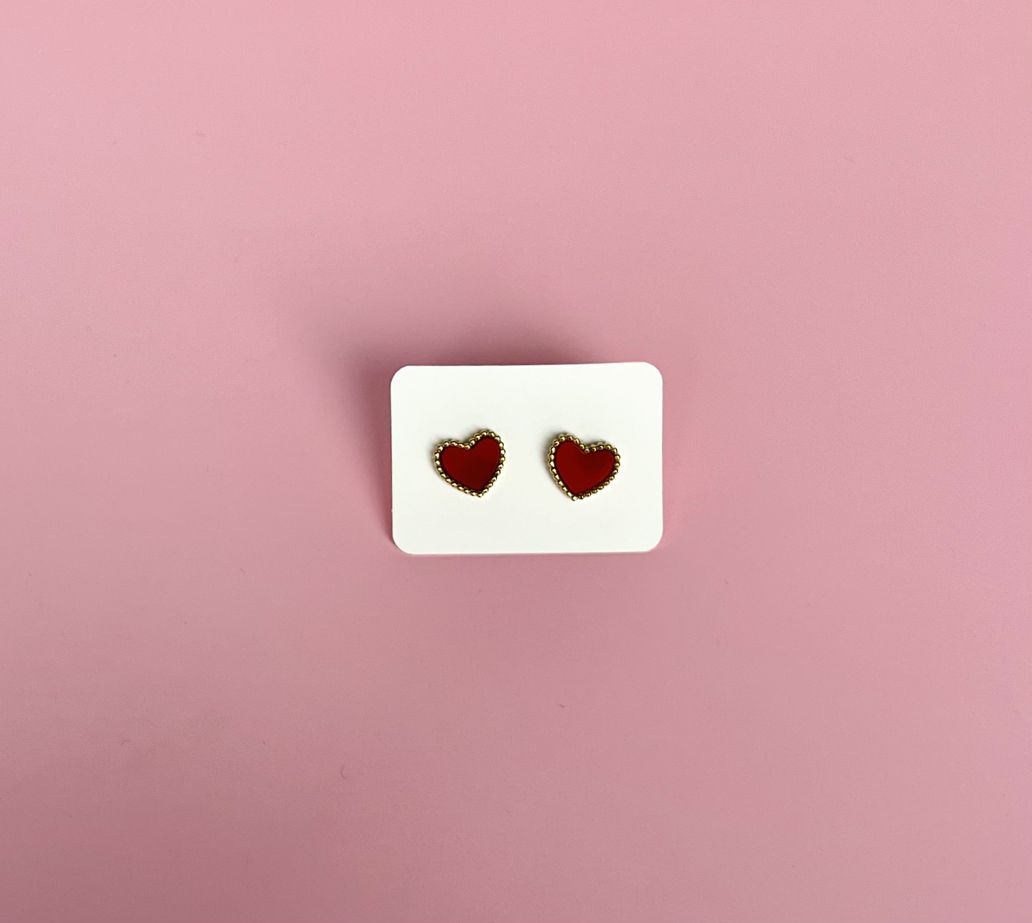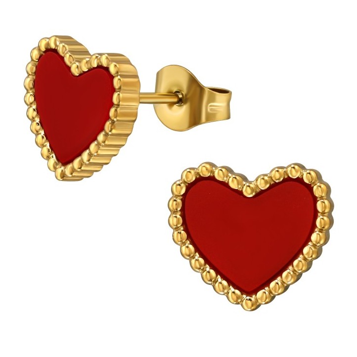 Klassische kleine Herz Ohrstecker in Gold und Rot.