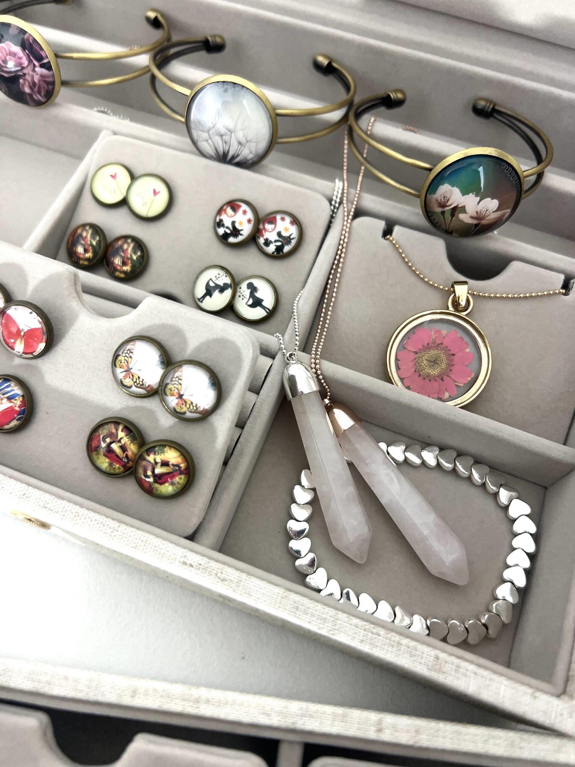 Die gezeigten Bilder geben euch einen kleinen Einblick in die Art der Schmuckstücke die enthalten sein können, jede Wundertüte ist einzigartig und wird mit viel Liebe von mir zusammengestellt.