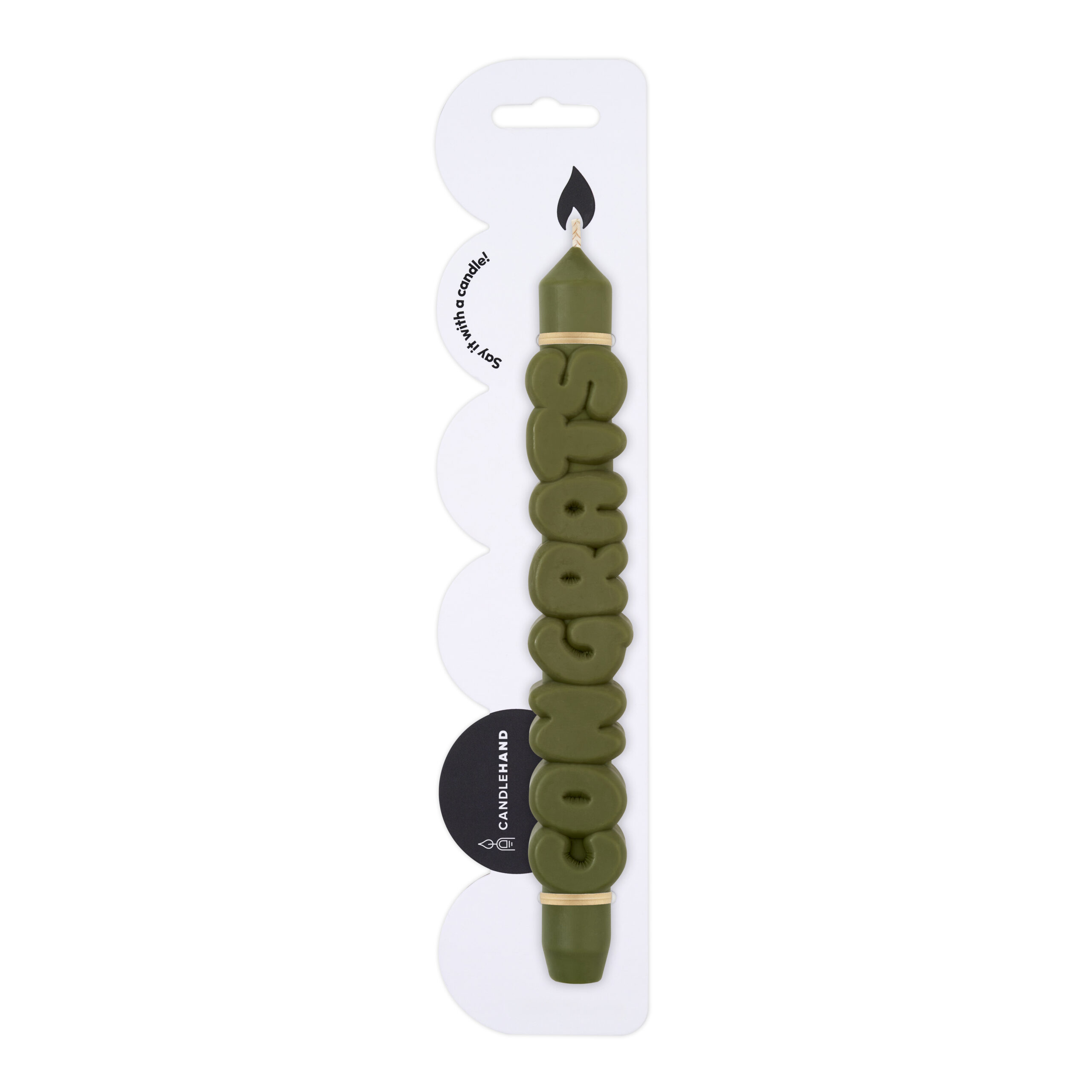 Lass diese Kerze für sich sprechen! Mit „CONGRATS“ überbringst du deine Glückwünsche non-verbal. Die Stabkerze wird vollständig von Hand gefertigt – von der Form bis zum Finish – und ist duftfrei.