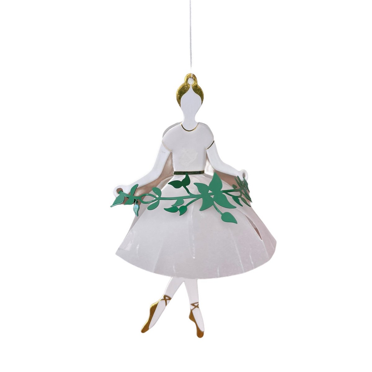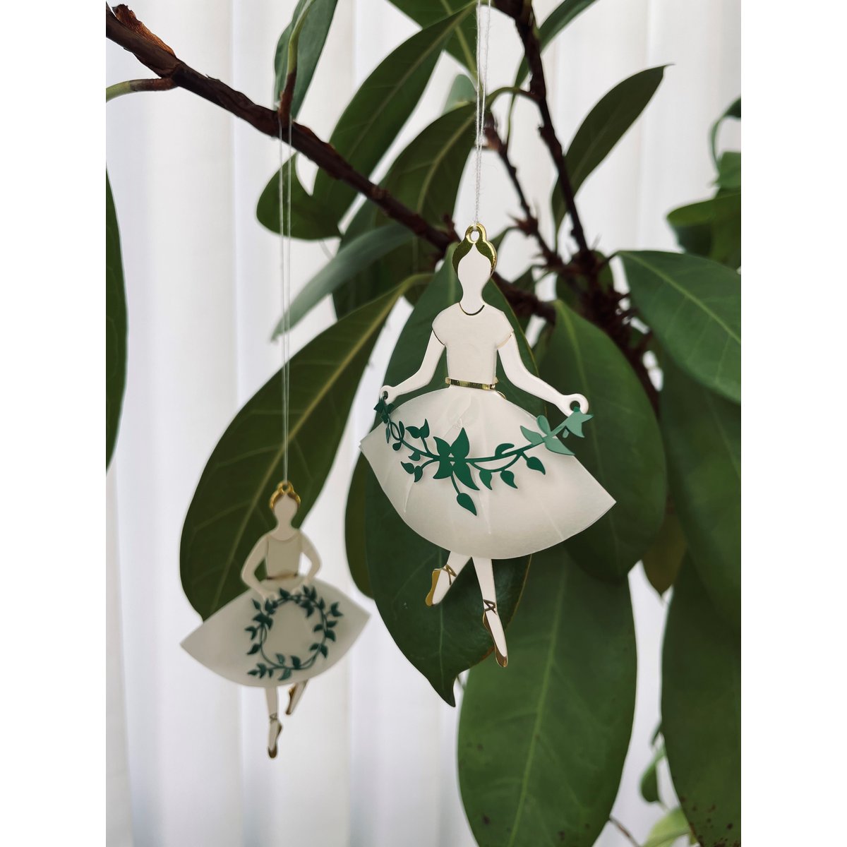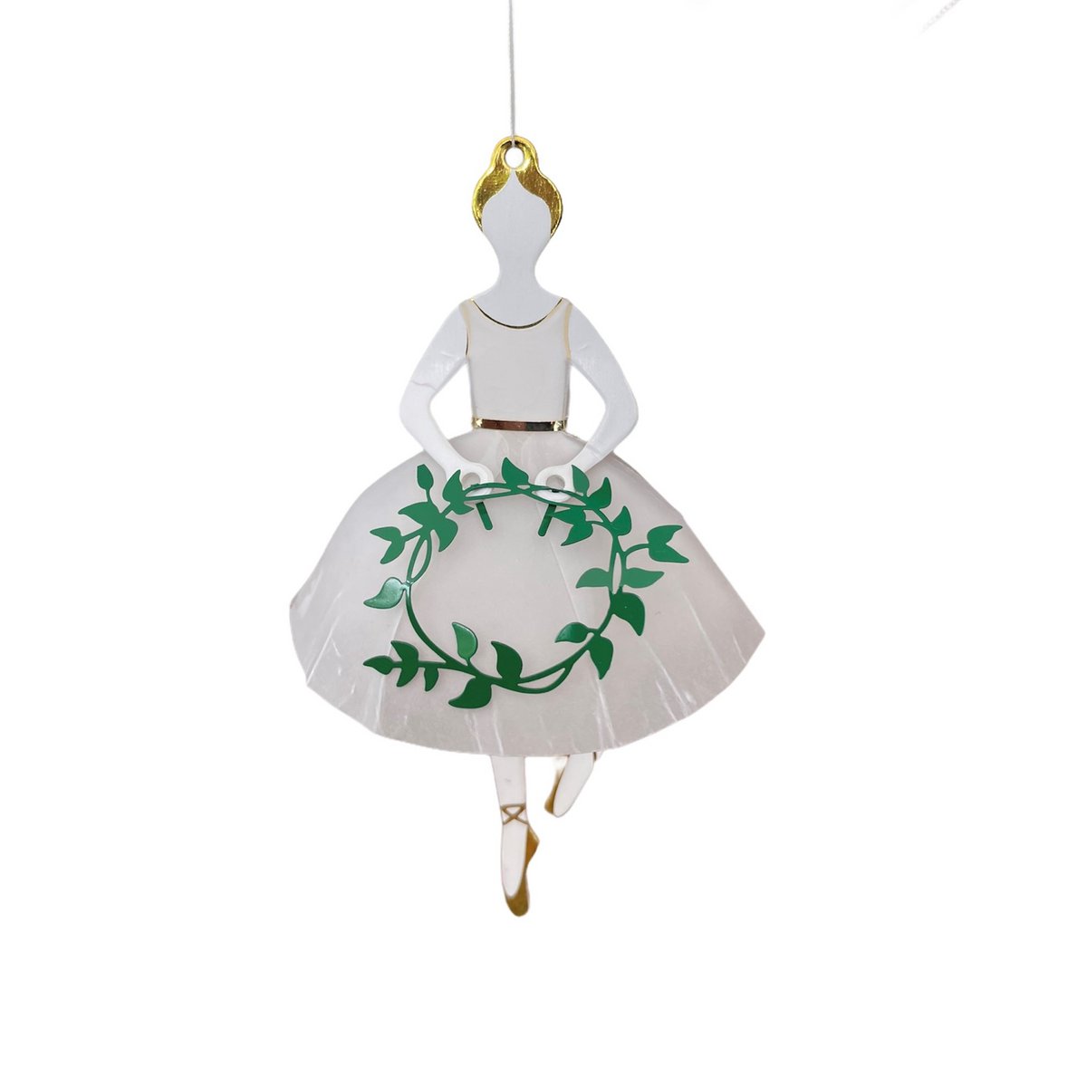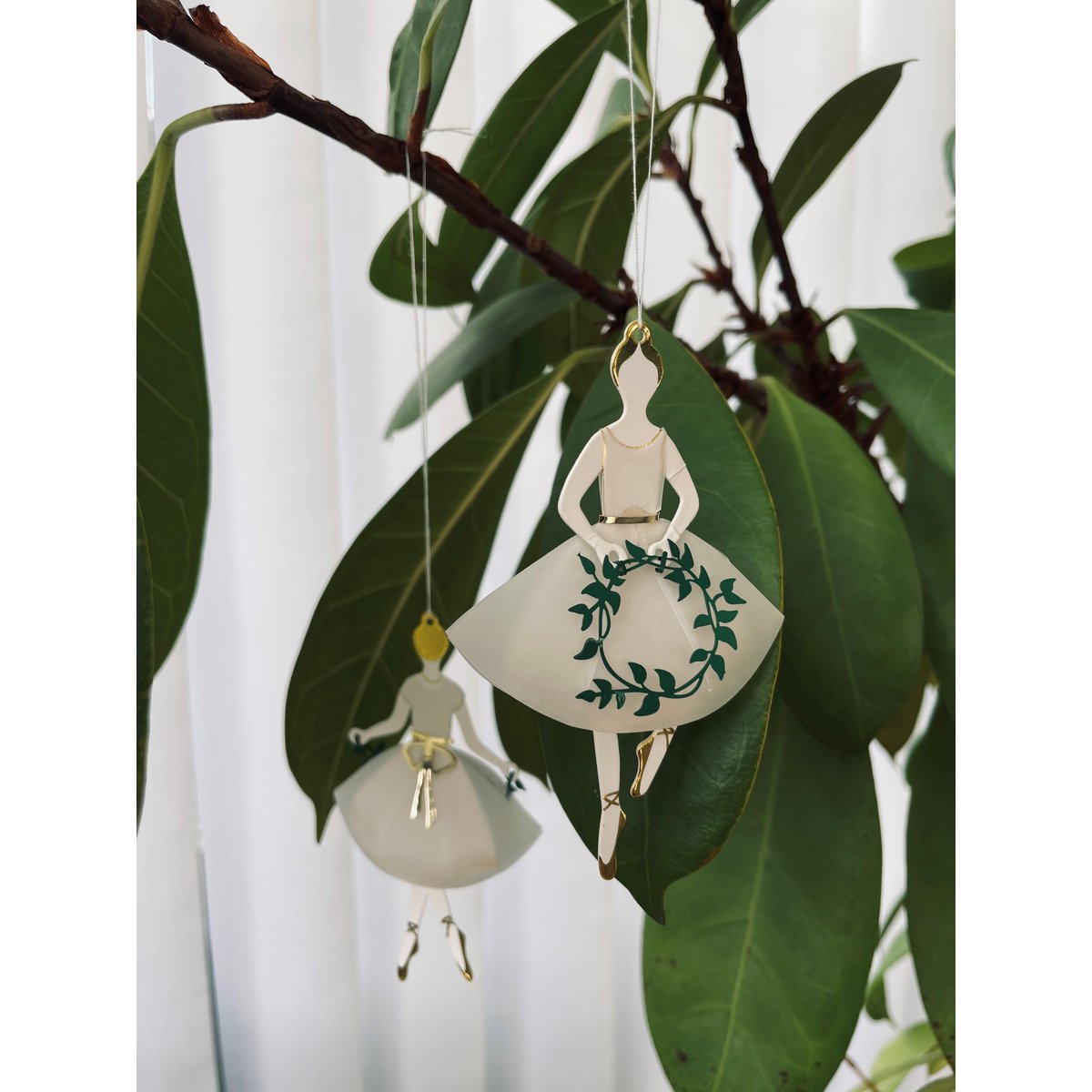 Wenn sie sich in ihren sehr zarten, durchscheinenden Kleidern mit goldenen Details, einem goldenen Band um die Taille und mit einem grünen Kranz oder einer grünen Girlande in den Händen wiegen und drehen, kann man sich diese zauberhaften Mädchen aus Jette Frölichs Fantasie beim Tanzen leicht vorstellen.