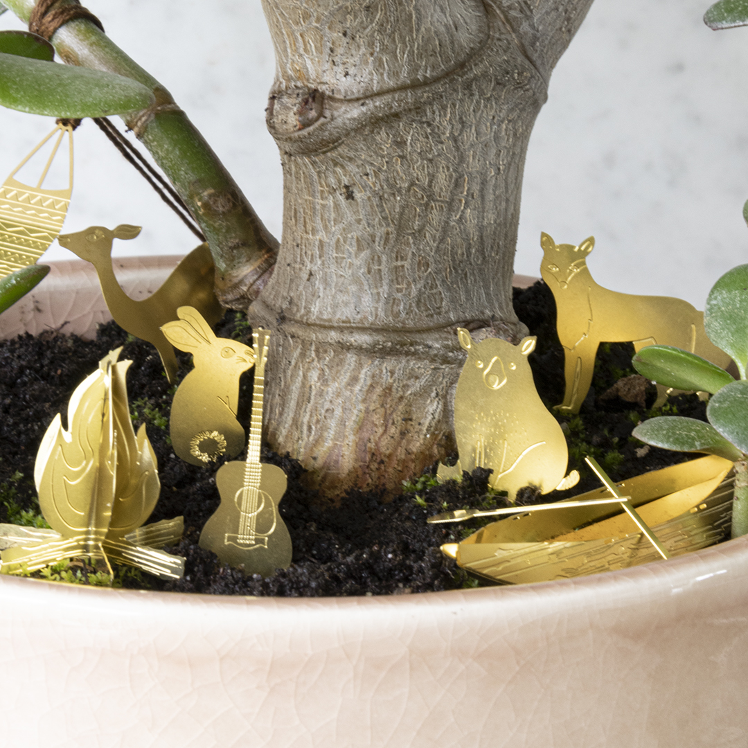 Zieh dir bequeme Kleidung an, schnapp dir dein Zelt und vergiss die Marshmallows nicht, denn wir gehen campen! Bau dein Tiny Camping Set im Topf deiner Lieblingspflanze auf und bewundere die Idylle, bis das goldene Messing im Mondlicht schimmert.